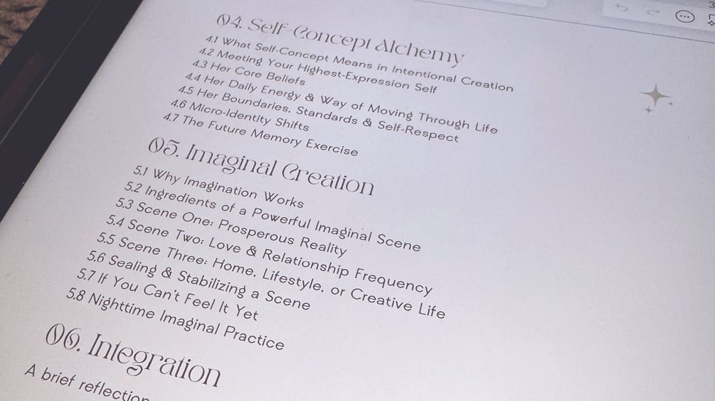 The guidebook blends soft journaling, self-concept work, intuitive visioning, and grounded reflection. Nothing overwhelming or complicated. Just a quiet space to get clear about what you want and who you’re becoming.